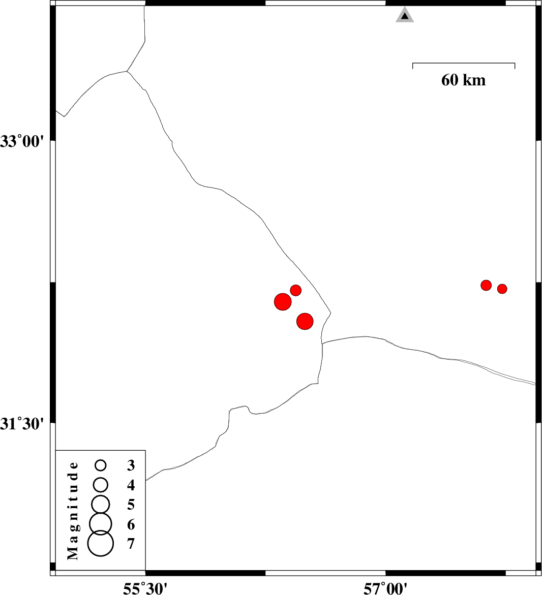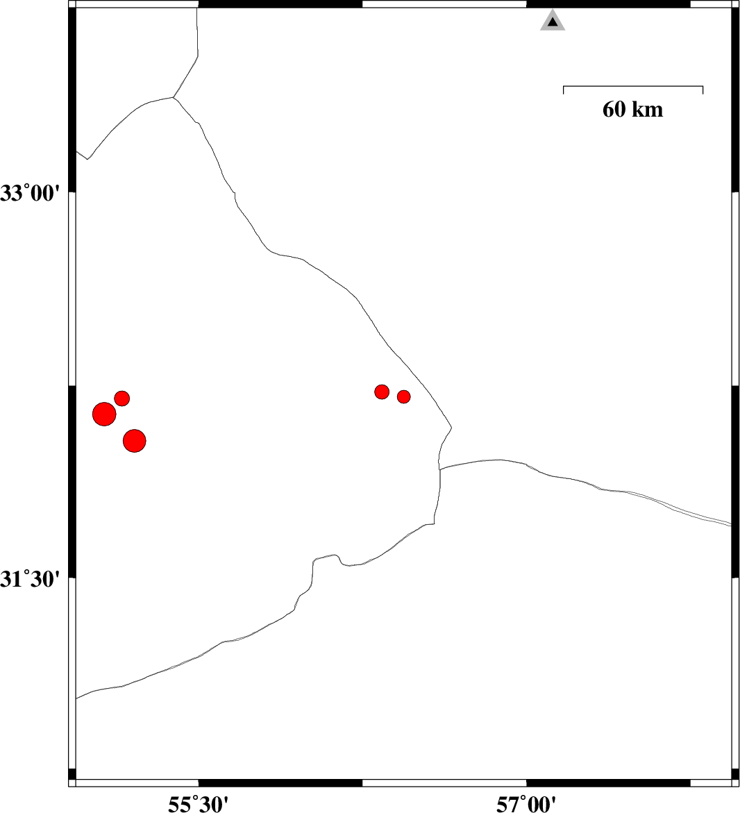 | 2025/11/27 | 21:41:52.2 | 01:11:52.2 | 32.146 | 56.357 | 19 | ML4.8 | Yazd Province, 107 km North-West of Ravar | ||