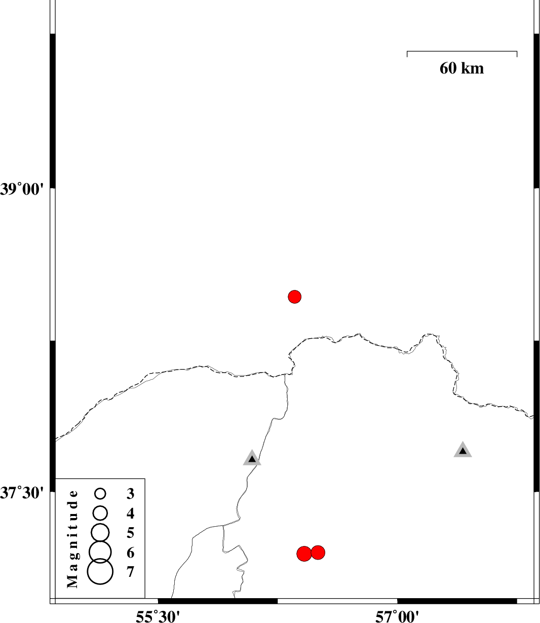 | 2025/12/03 | 21:51:44.7 | 01:21:44.7 | 37.196 | 56.502 | 12 | ML3.9 | Khorasan(north) Province, 29 km North-East of Jajarm | ||