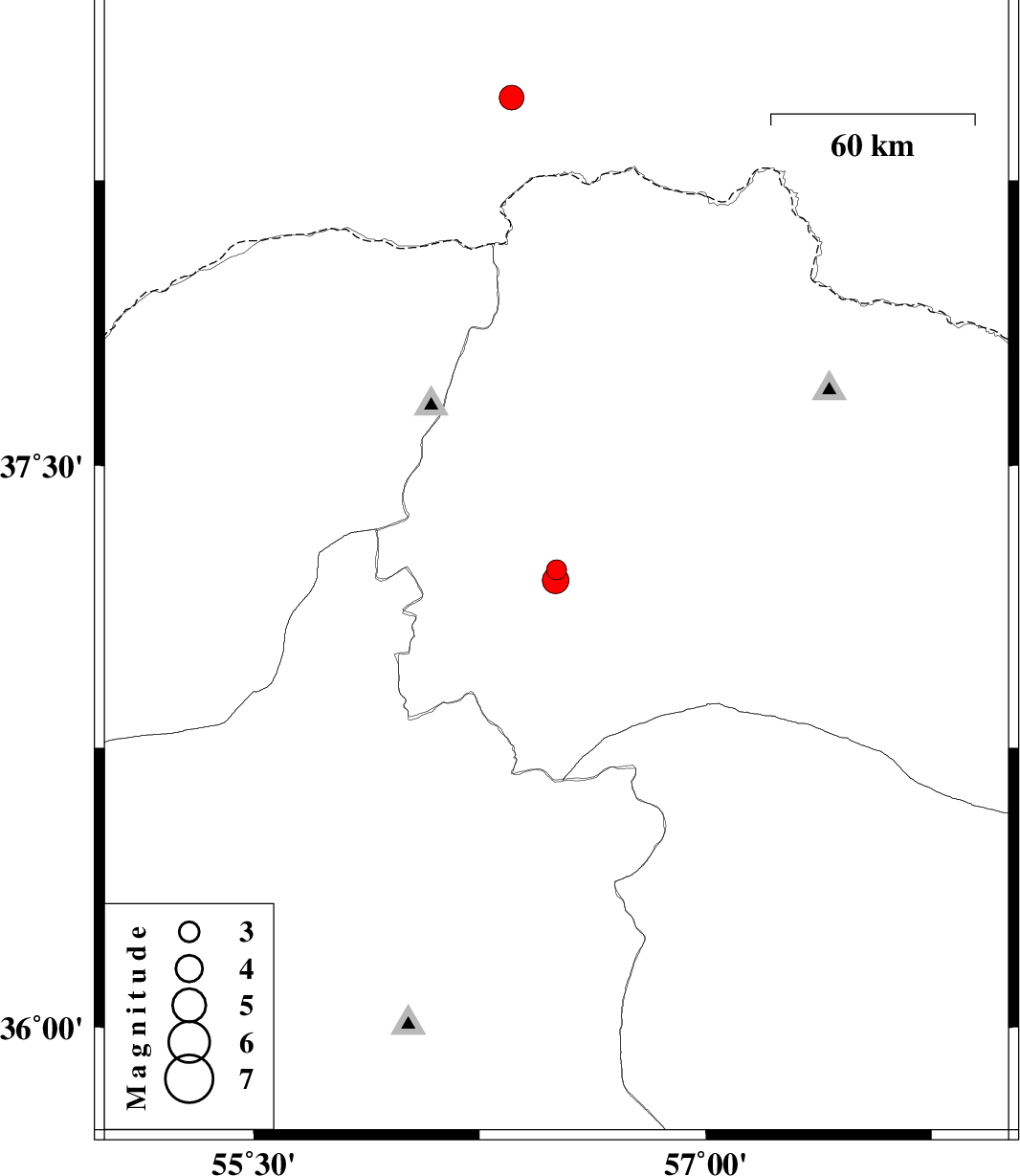 | 2025/12/03 | 21:51:44.7 | 01:21:44.7 | 37.196 | 56.502 | 12 | ML3.9 | Khorasan(north) Province, 29 km North-East of Jajarm |