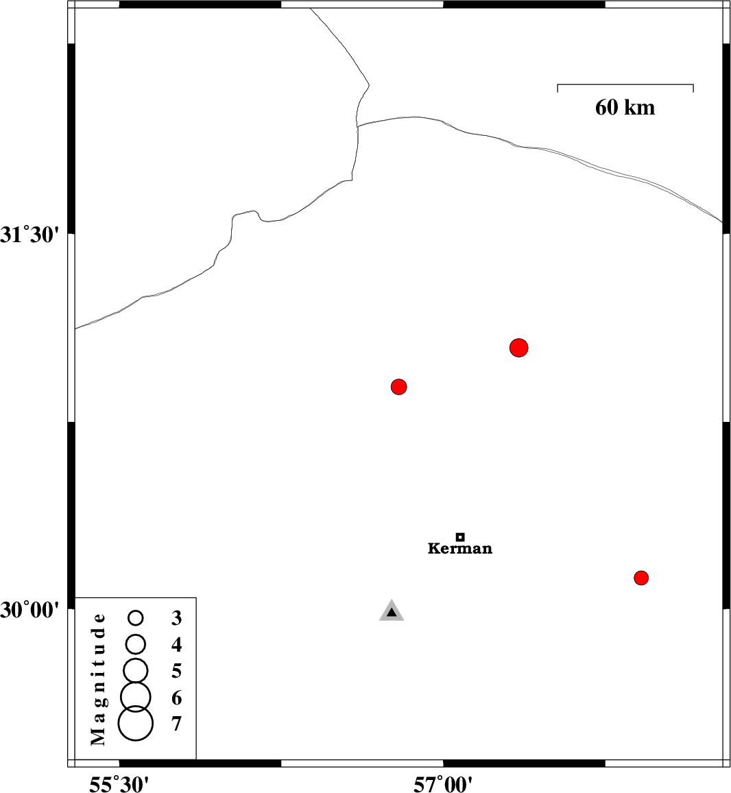 | 2025/12/06 | 23:13:02.1 | 02:43:02.1 | 30.124 | 57.916 | 12 | ML2.9 | Kerman Province, 82 km South-East of Kerman |