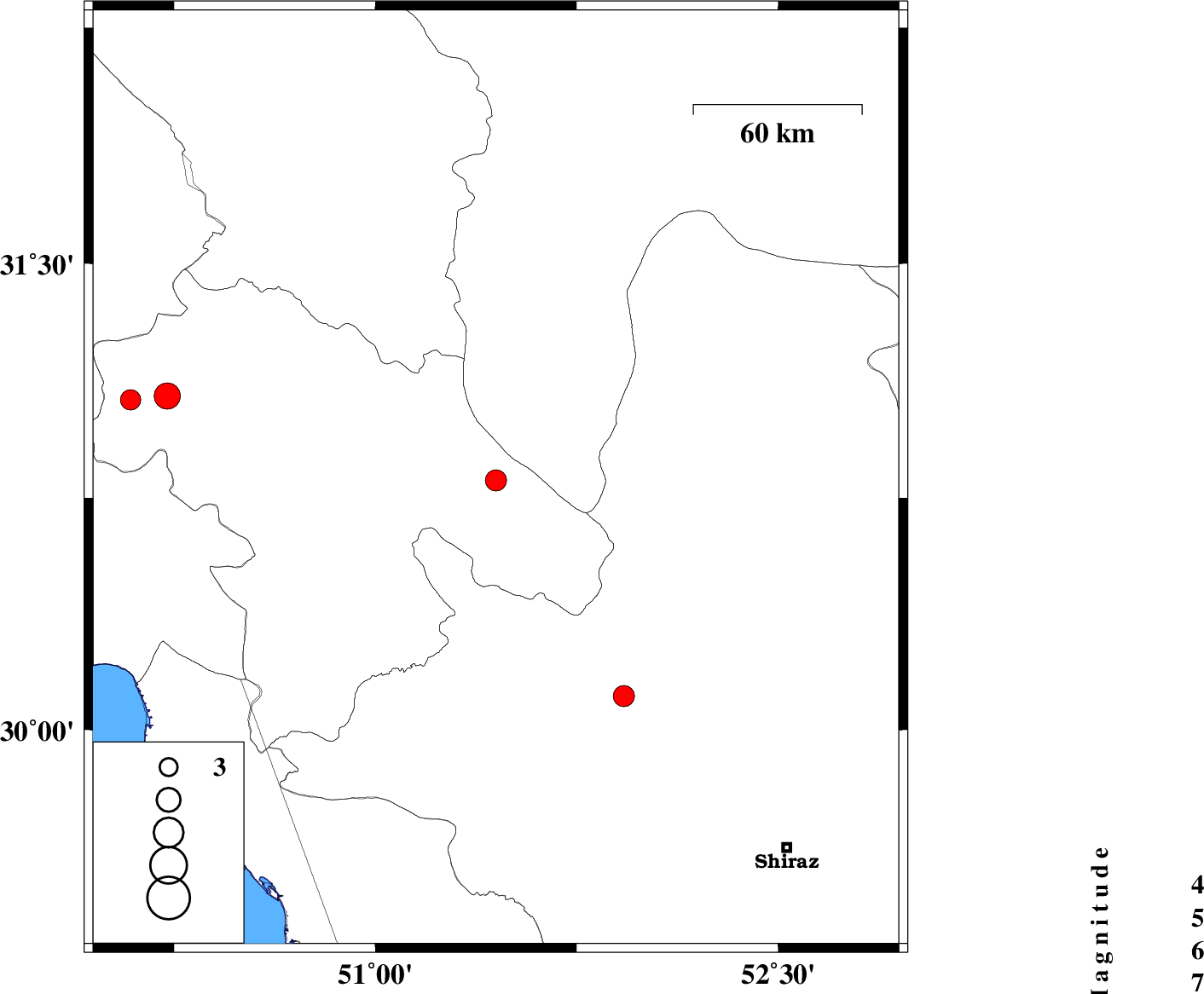 | 2026/01/09 | 08:12:44.9 | 11:42:44.9 | 30.11 | 51.925 | 12 | ML3.5 | Fars Province, 18 km South of Ardakan | ||