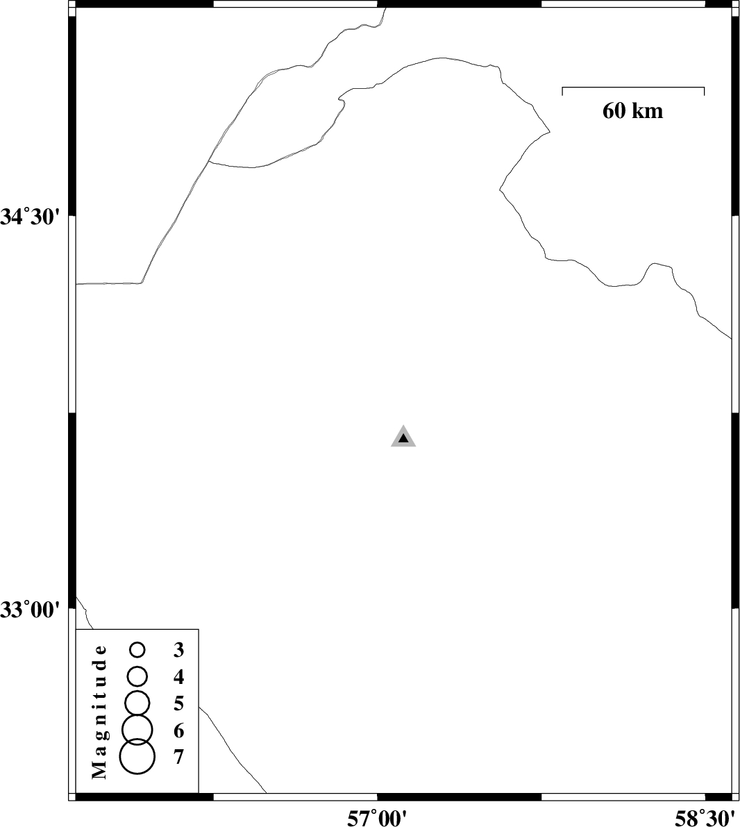 | 2026/01/13 | 13:55:17.5 | 17:25:17.5 | 33.784 | 57.12 | 10 | ML3 | Yazd Province, 27 km North-East of Tabas |