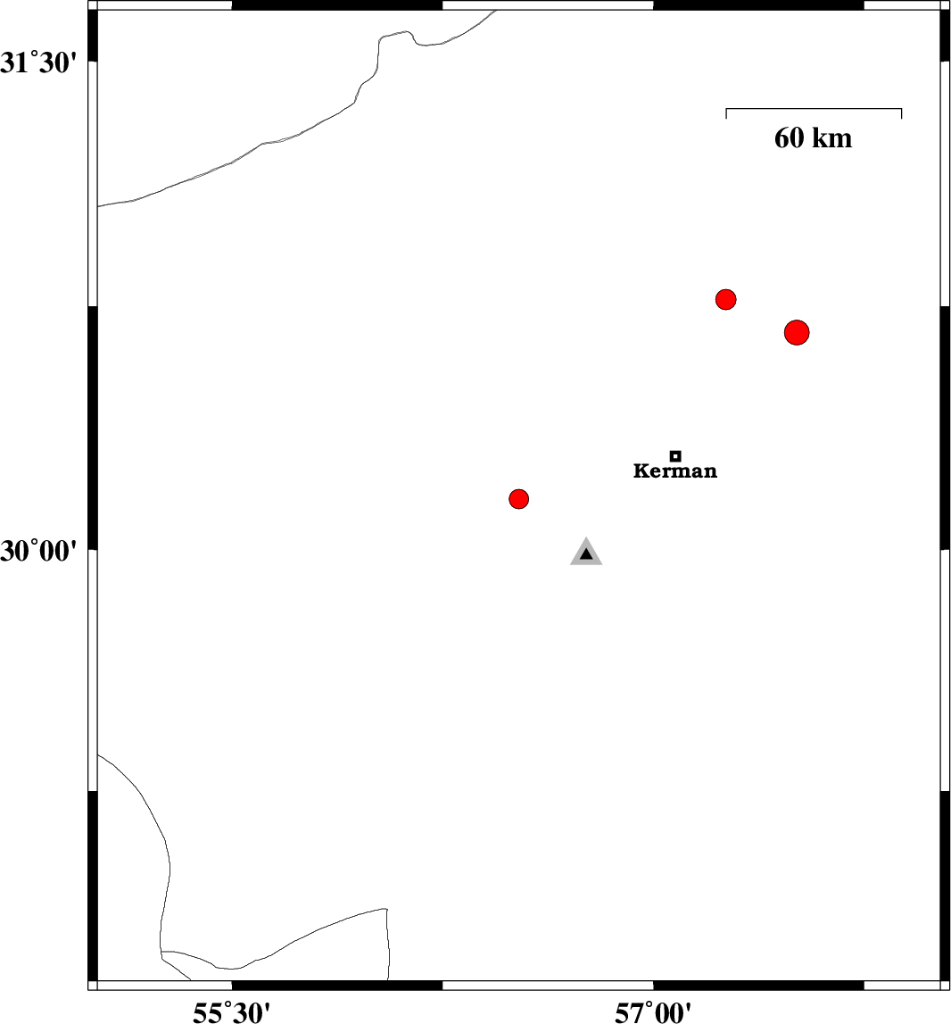 | 2025/12/26 | 15:46:48.5 | 19:16:48.5 | 30.77 | 57.257 | 12 | ML3.2 | Kerman Province, 56 km North-East of Kerman | ||