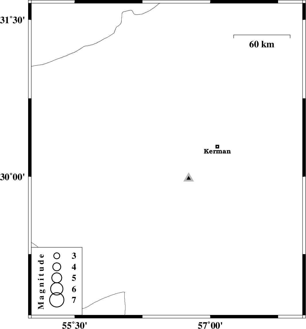 | 2026/01/17 | 14:07:43.6 | 17:37:43.6 | 30.156 | 56.521 | 12 | ML3.1 | Kerman Province, 26 km North of Bardsir |
