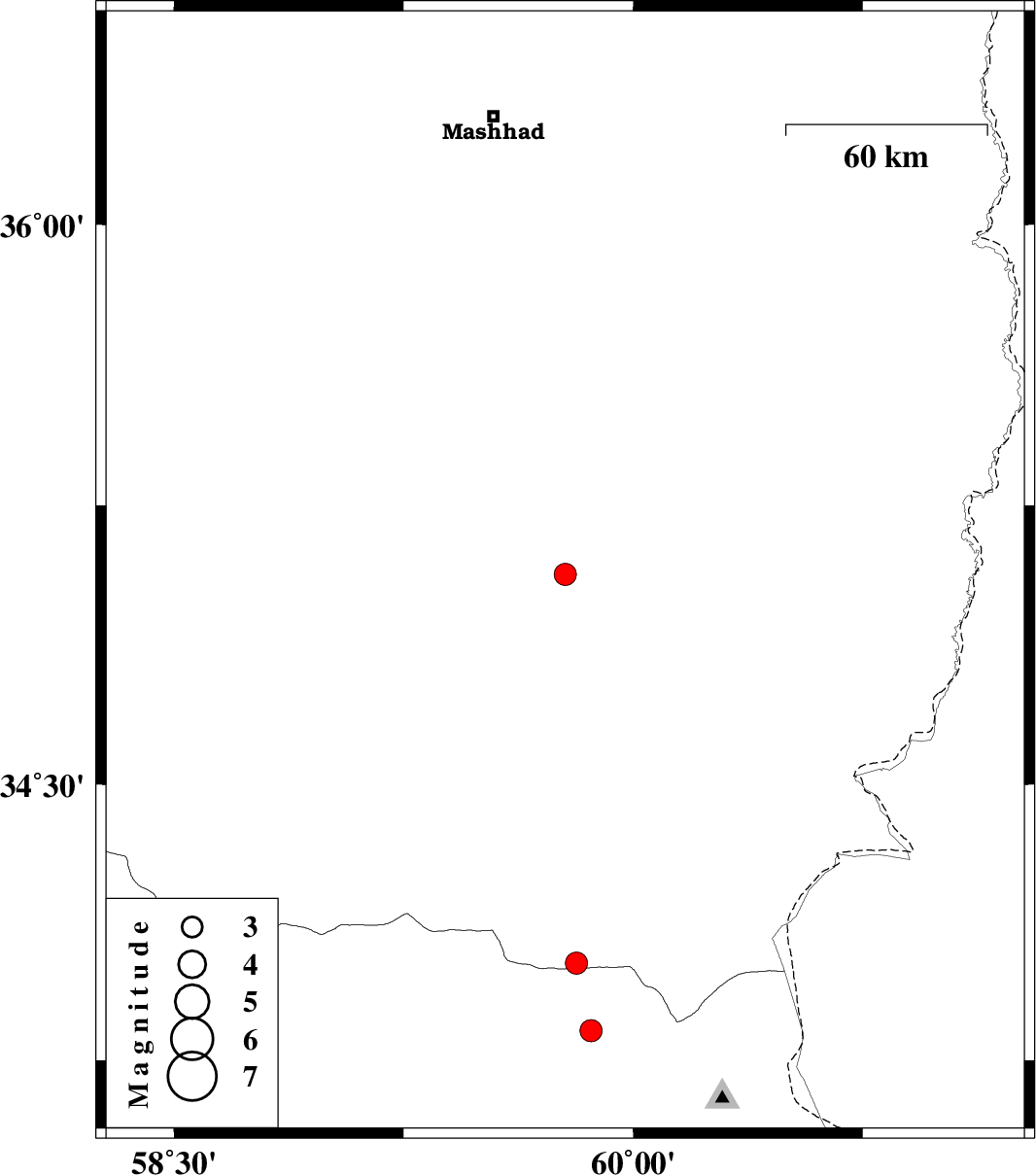 | 2026/01/05 | 07:29:51.9 | 10:59:51.9 | 34.014 | 59.814 | 12 | ML3.2 | Khorasan(center) Province, 69 km South-West of Khaf | ||