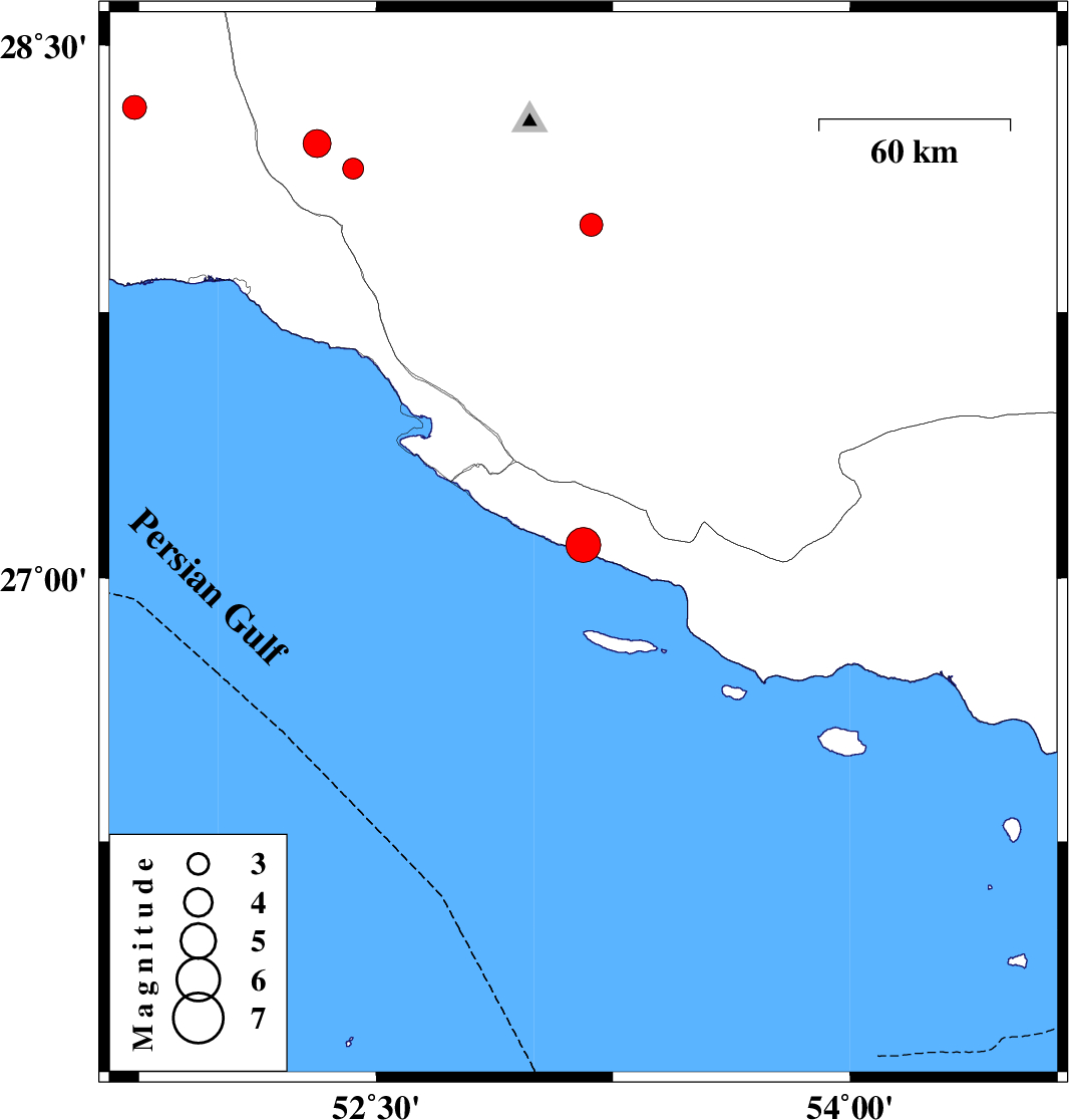 | 2025/12/24 | 00:20:21.2 | 03:50:21.2 | 28.326 | 51.735 | 8 | ML3.4 | Bushehr Province, 51 km South-East of Khormog |