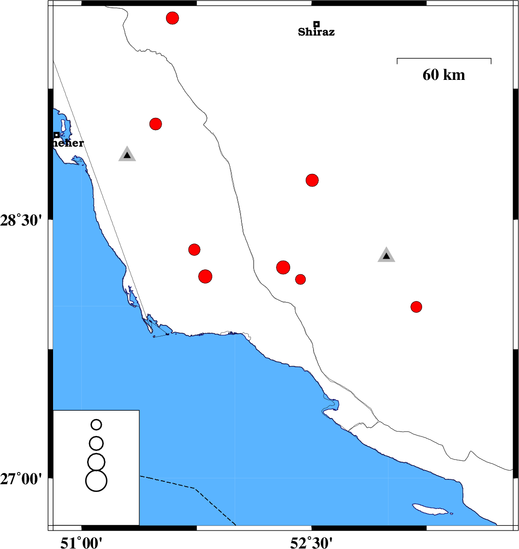 Bushehr Province, 46 km North-West of Bandar-e kangan | |