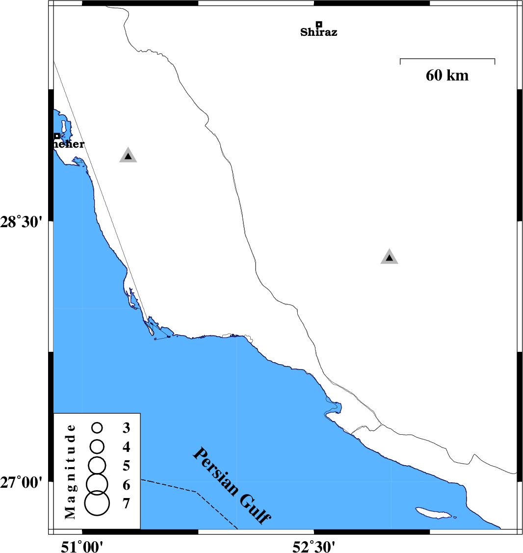 | 2026/01/20 | 03:46:00.9 | 07:16:00.9 | 28.224 | 52.314 | 12 | ML3.9 | Fars Province, 43 km North of Jam |