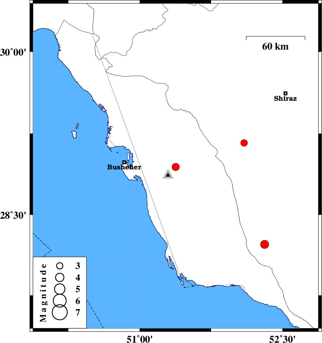 | 2026/01/27 | 13:09:33.0 | 16:39:33.0 | 28.941 | 51.378 | 12 | ML3.5 | Bushehr Province, 13 km -East of Ahram | ||