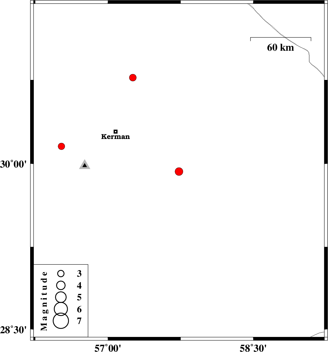 | 2026/01/17 | 14:07:43.6 | 17:37:43.6 | 30.156 | 56.521 | 12 | ML3.1 | Kerman Province, 26 km North of Bardsir | ||