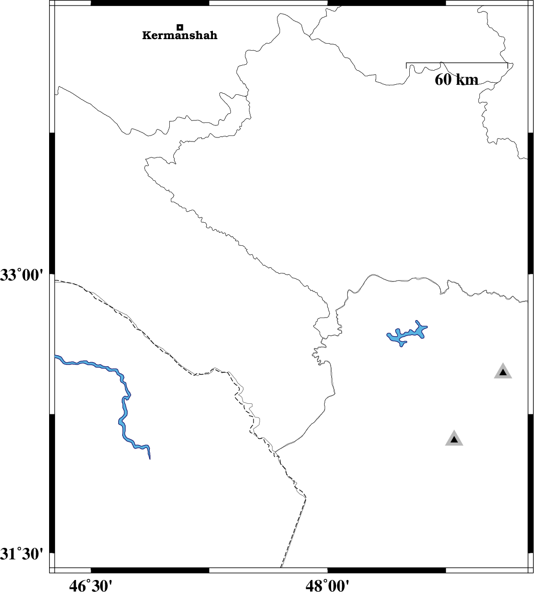 | 2010/06/25 | 08:11:24.1 | 12:41:24.1 | 32.92 | 47.77 | 15 | ML3 | Ilam Province, 26 km South of Pol-e dokhtar | ||