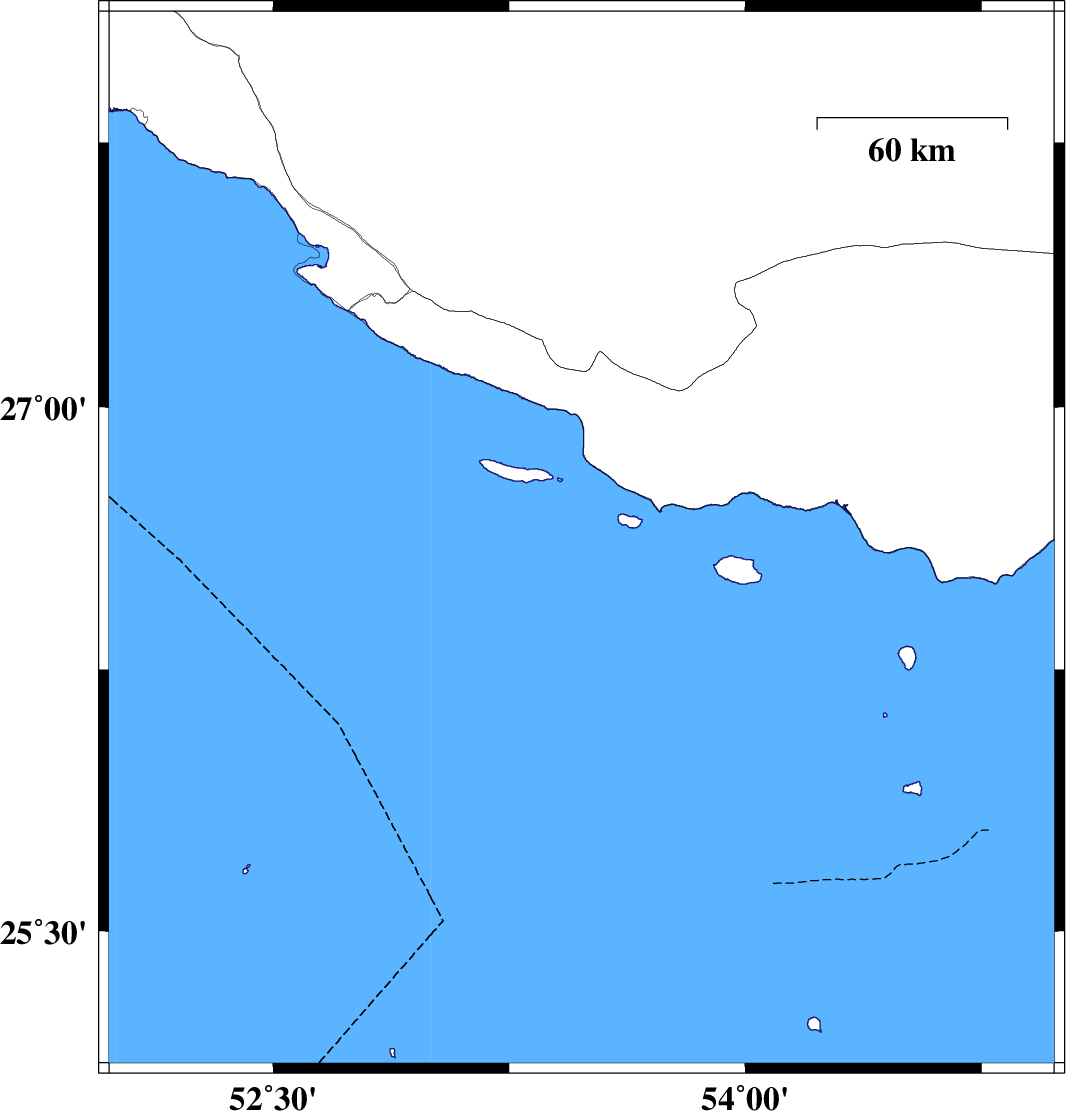 Persian Gulf, 86 km South-East of Lamerd | |