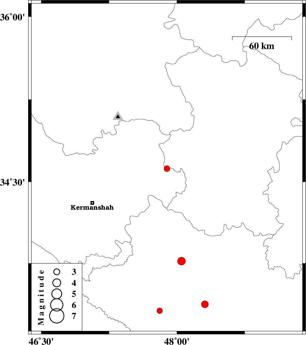 | 2010/08/13 | 22:48:37.0 | 03:18:37.0 | 34.62 | 47.89 | 14 | ML2.9 | Kermanshah Province, 15 km North of Kangavar | ||
