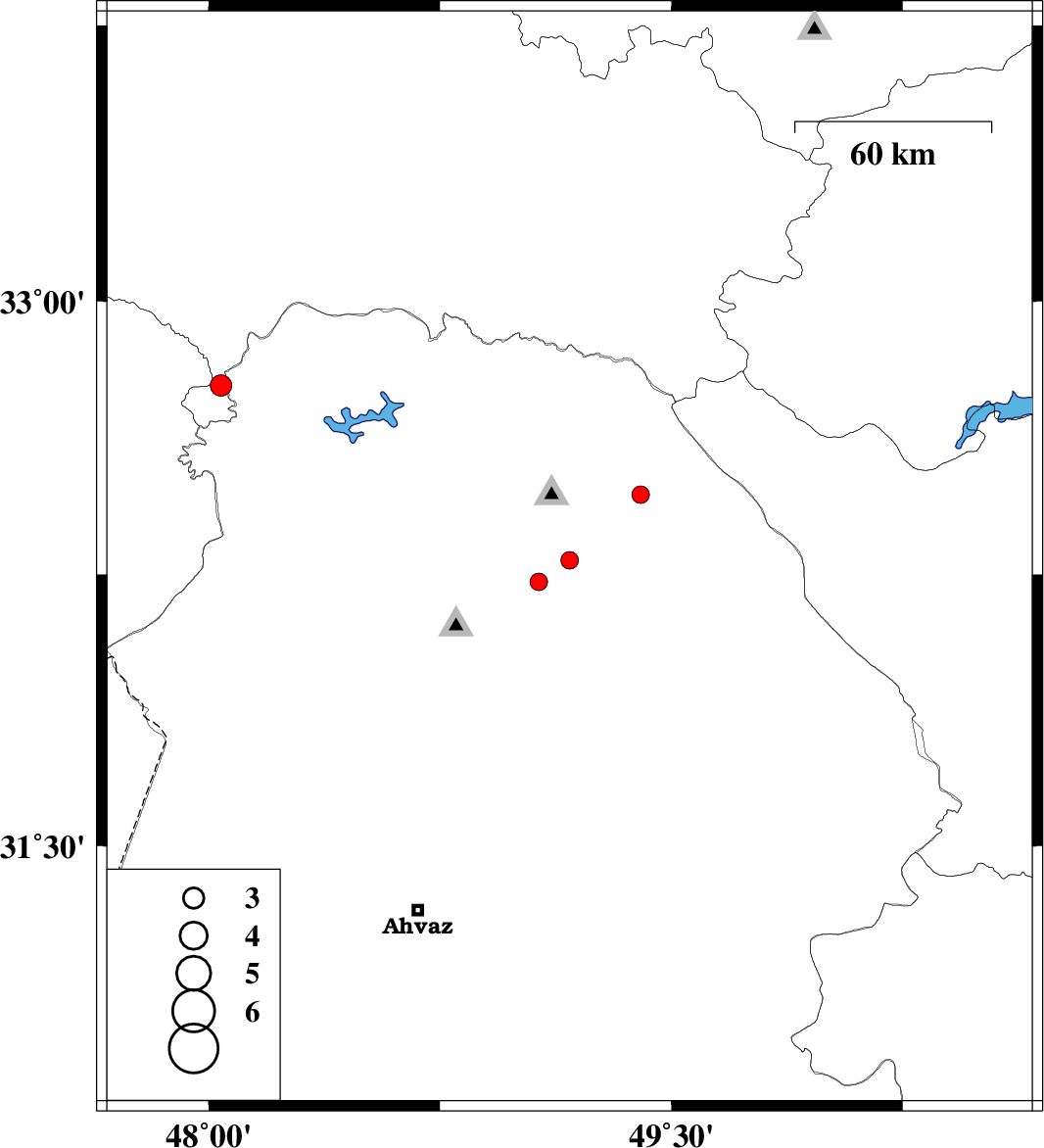 | 2010/09/15 | 16:47:46.8 | 21:17:46.8 | 32.47 | 49.4 | 18 | ML2.5 | Khoozestan Province, 28 km East of Lali |
