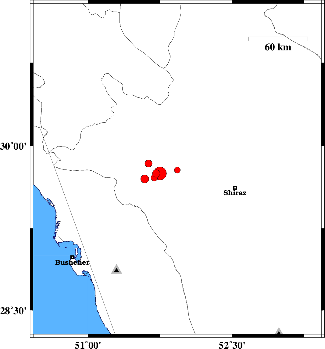 2010/09/27 15:05:48.3 18:35:48.3 29.751.5942 ML3.8 Fars Province, 11 km Kazerun