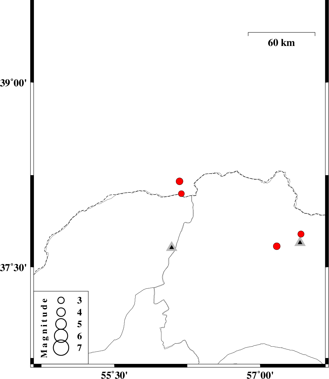 | 2010/09/23 | 13:59:44.8 | 17:29:44.8 | 37.77 | 57.42 | 14 | ML2.9 | Khorasan(north) Province, 34 km North of Bojnurd |