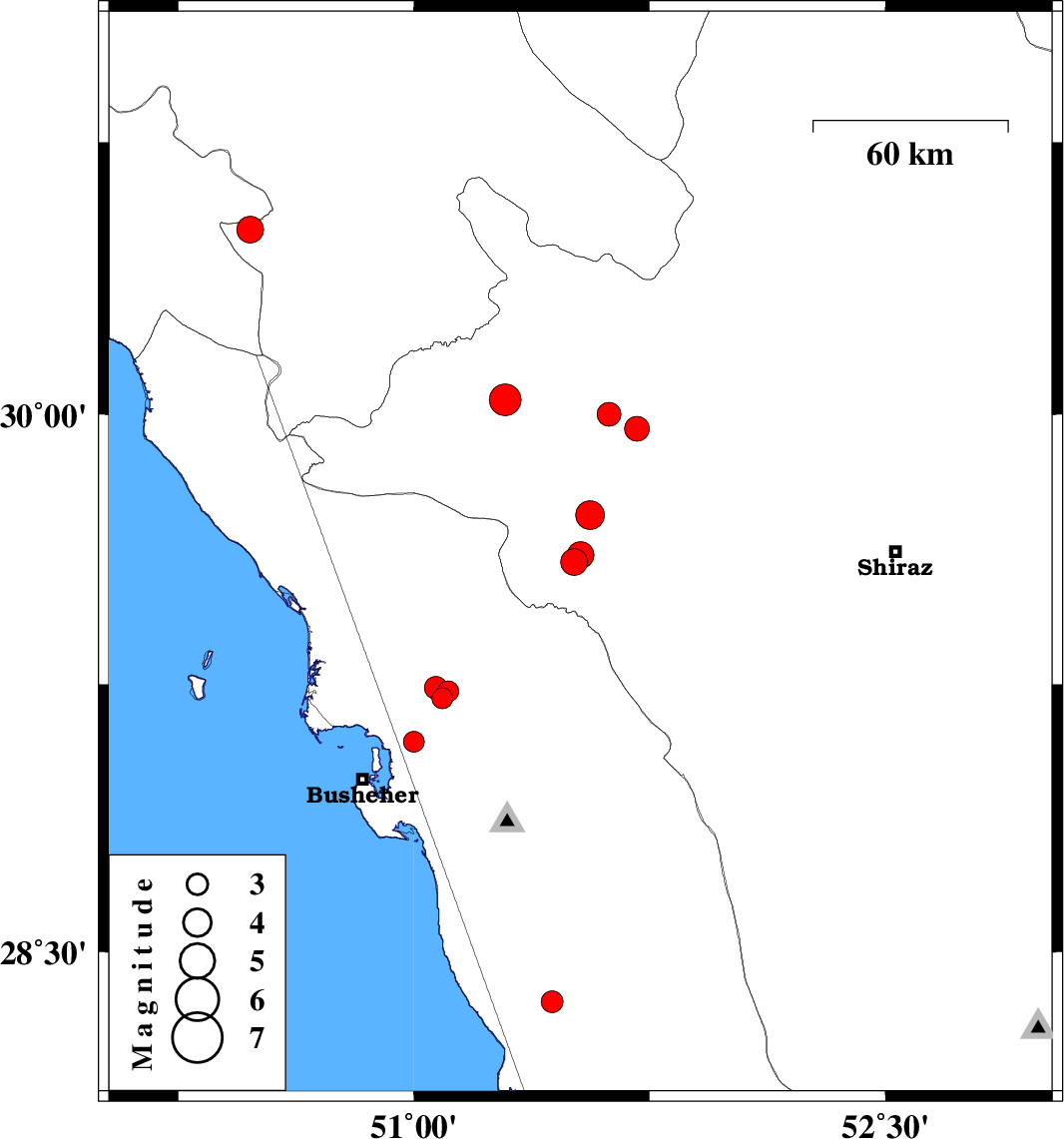2010/10/09 00:22:09.8 03:52:09.8 29.2151.0918 ML3 Bushehr Province, 12 km West of Borazjan