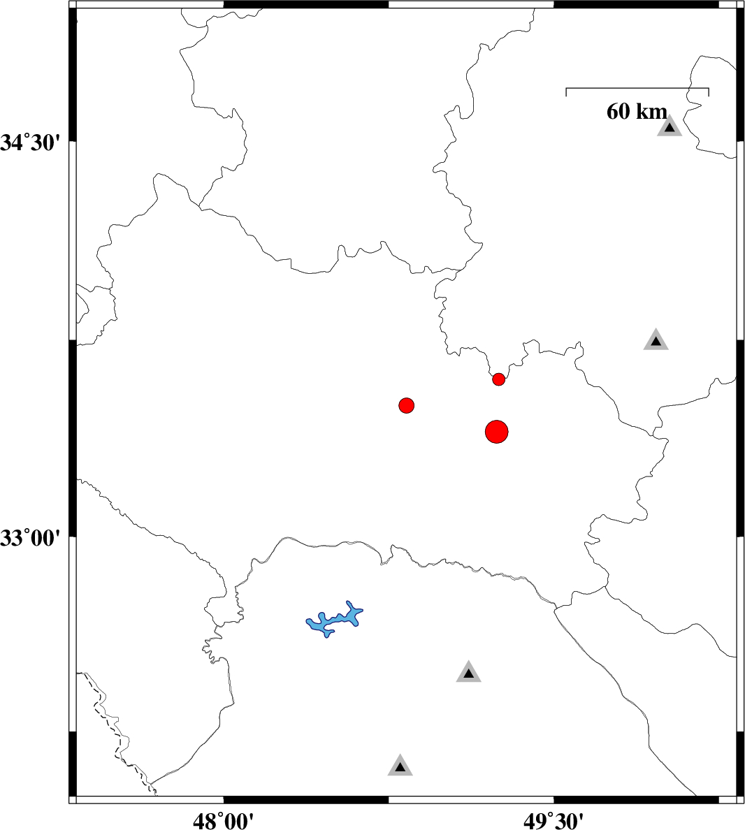 | 2010/11/06 | 03:52:19.7 | 07:22:19.7 | 33.4 | 49.24 | 8 | ML4.7 | Lorestan Province, 17 km East of Dorud |