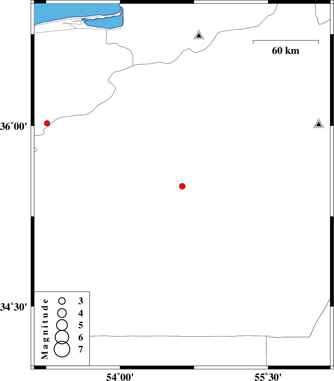 | 2010/11/15 | 04:57:12.1 | 08:27:12.1 | 36.02 | 53.26 | 14 | ML2.6 | Mazandaran Province, 21 km East of Pol-E-Sefid |