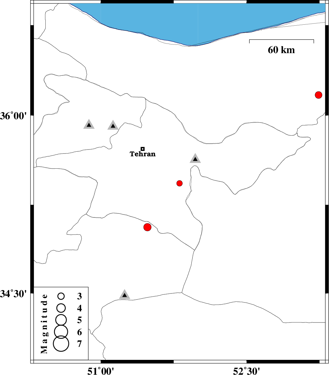 | 2010/11/25 | 07:54:27.3 | 11:24:27.3 | 36.17 | 53.24 | 18 | ML3.2 | Mazandaran Province, 17 km East of Pol-E-Sefid |