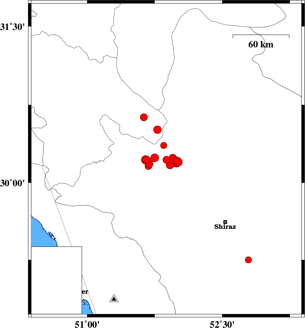 2011/01/05 22:27:34.6 01:57:34.6 30.2251.6646 ML3.9 Fars Province, 18 km North-East of Nurabad