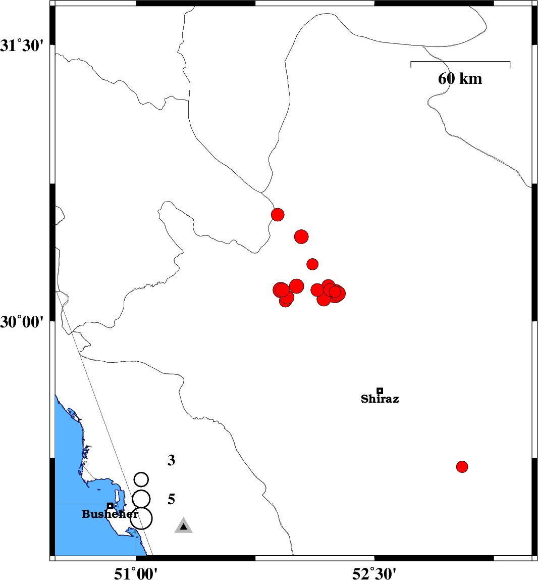 2011/01/05 06:47:02.3 10:17:02.3 30.1751.9218 ML3.9 Fars Province, 12 km Ardakan