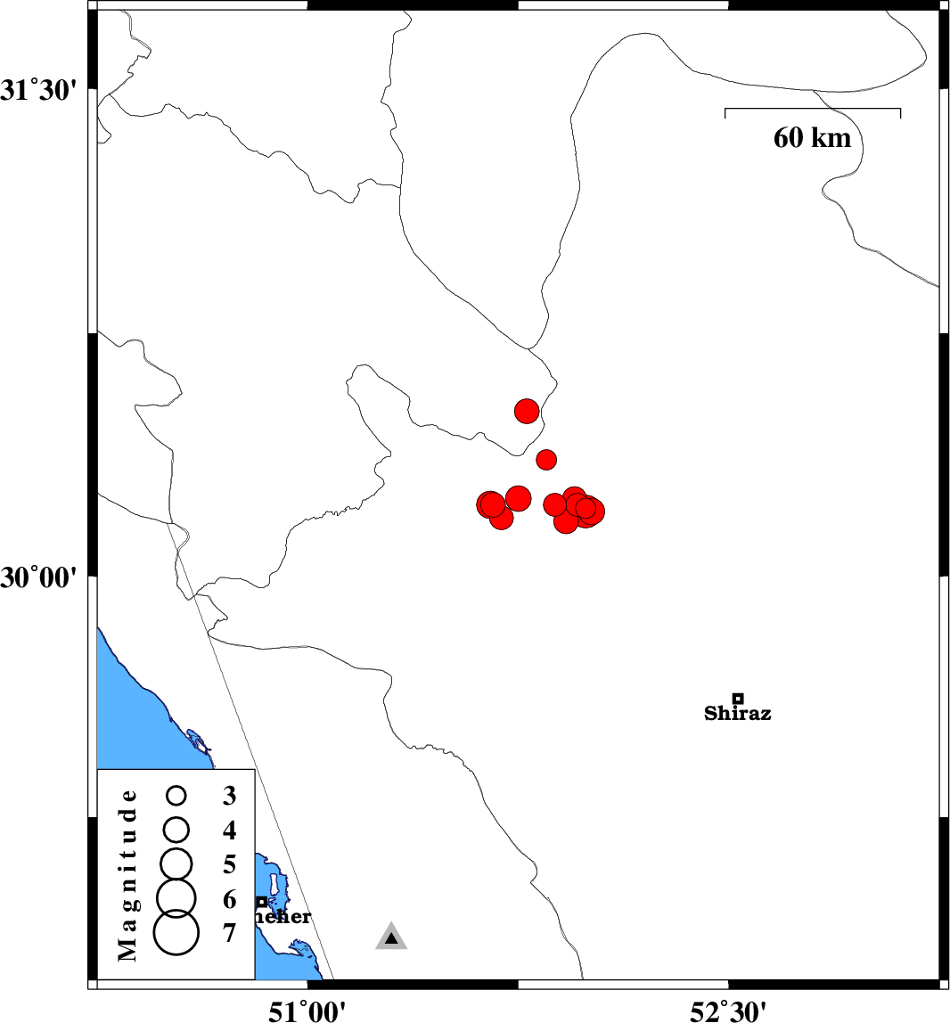 2011/01/05 22:27:34.6 01:57:34.6 30.2251.6646 ML3.9 Fars Province, 18 km North-East of Nurabad