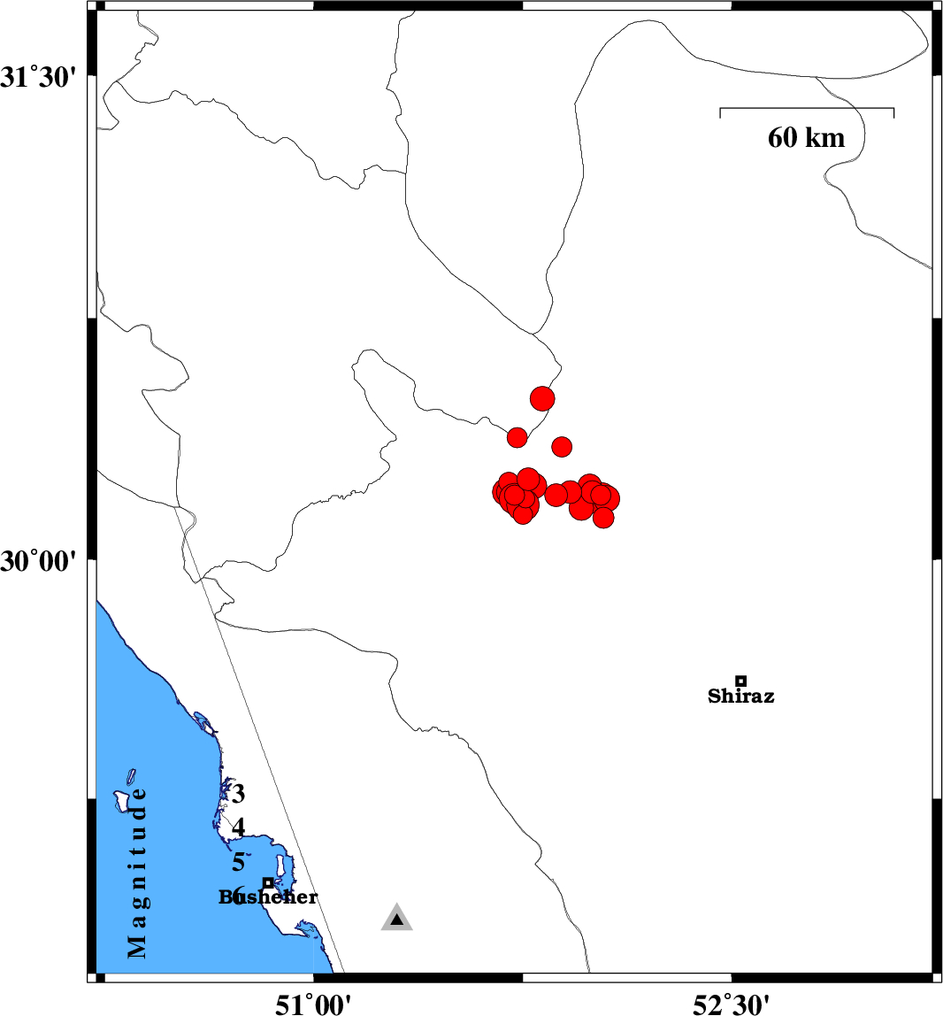 2011/01/05 22:27:34.6 01:57:34.6 30.2251.6646 ML3.9 Fars Province, 18 km North-East of Nurabad