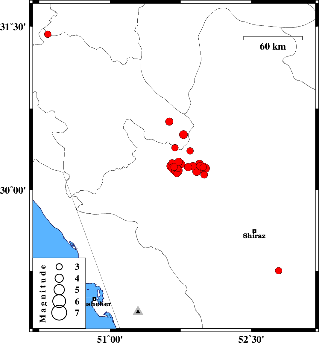 2011/01/08 01:07:40.4 04:37:40.4 30.251.7241 ML3 Fars Province, 22 km East of Nurabad