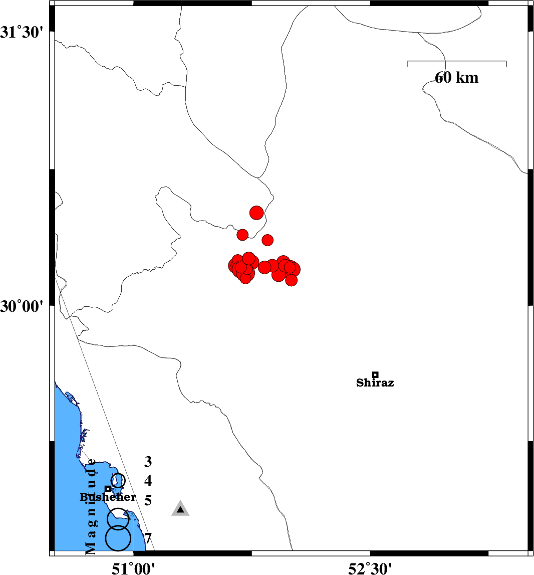 2011/01/07 23:53:00.8 03:23:00.8 30.251.6815 ML5 Fars Province, 18 km East of Nurabad