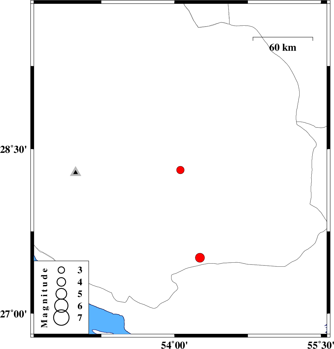 | 2011/01/09 | 13:13:06.7 | 16:43:06.7 | 27.51 | 54.26 | 17 | ML4.2 | Fars Province, 21 km South of Lar |