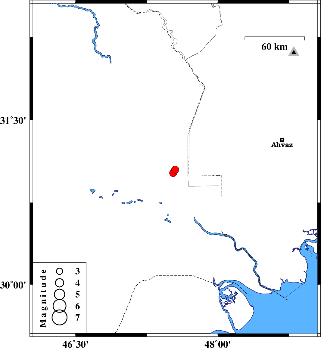 | 2011/01/12 | 20:21:55.8 | 23:51:55.8 | 31.02 | 47.53 | 23 | ML3.5 | Iraq, 61 km North-West of Al Basrah |