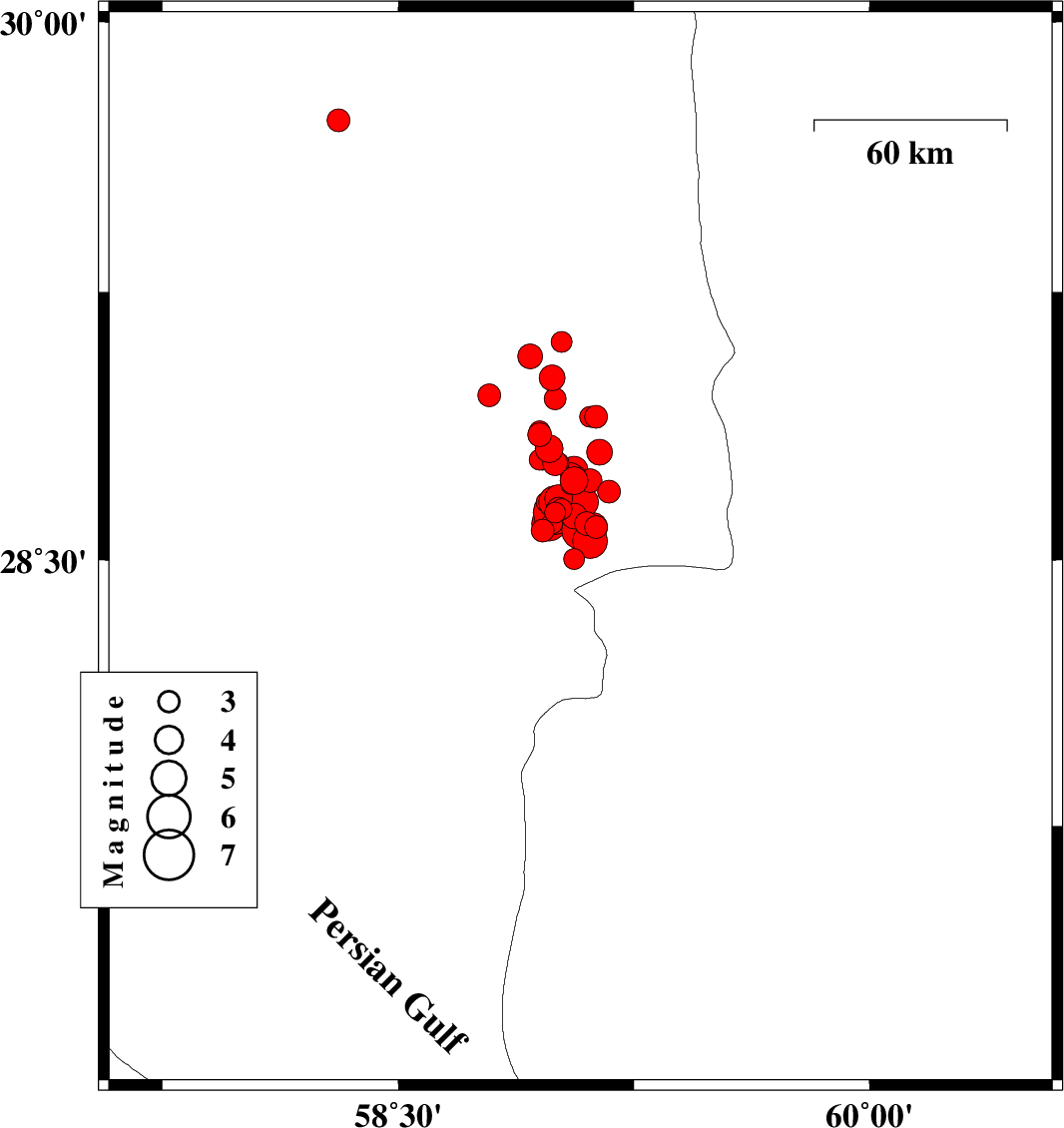 2011/01/27 13:07:36.7 16:37:36.7 28.359.0514 ML3 Kerman Province, 113 km South-East of Bam