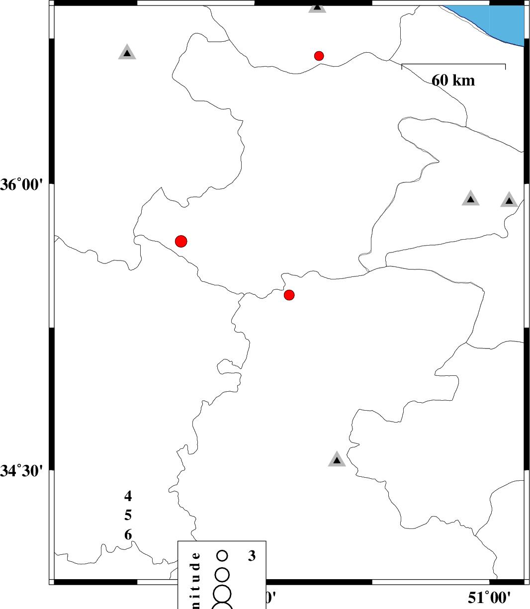 | 2011/02/22 | 22:01:45.6 | 01:31:45.6 | 36.66 | 49.91 | 14 | ML2.7 | Gilan Province, 44 km North of Qazvin |
