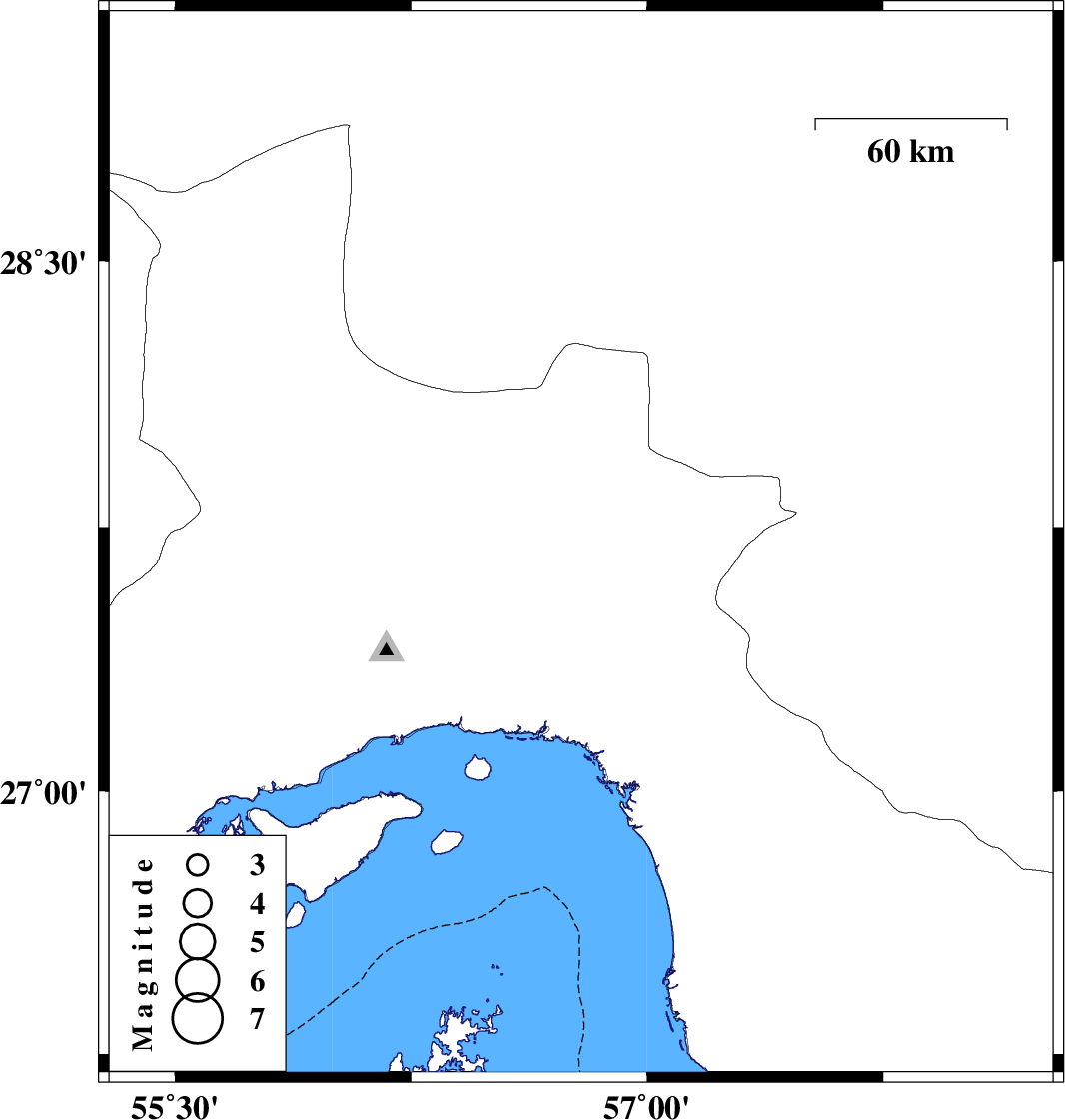 | 2011/03/14 | 07:55:09.8 | 11:25:09.8 | 27.7 | 56.79 | 25 | ML4.8 | Hormozgan Province, 54 km North-West of Dehbarez |