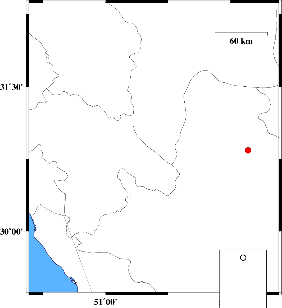 | 2011/04/09 | 02:43:50.1 | 07:13:50.1 | 30.86 | 51.58 | 15 | ML3 | Esfahan Province, 12 km East of Sisakht |