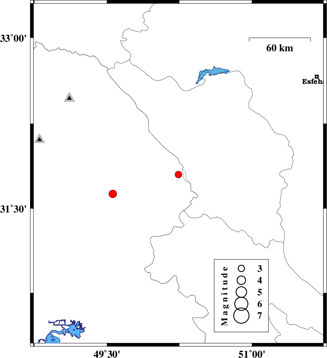 | 2011/04/19 | 15:43:13.6 | 20:13:13.6 | 31.63 | 49.56 | 14 | ML3.7 | Khoozestan Province, 39 km North of Ramhormoz |