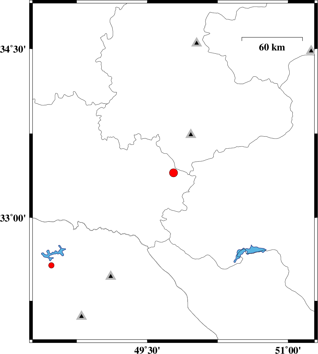 | 2011/05/12 | 05:37:45.4 | 10:07:45.4 | 33.4 | 49.78 | 14 | ML3.9 | Lorestan Province, 8 km Aligudarz | ||