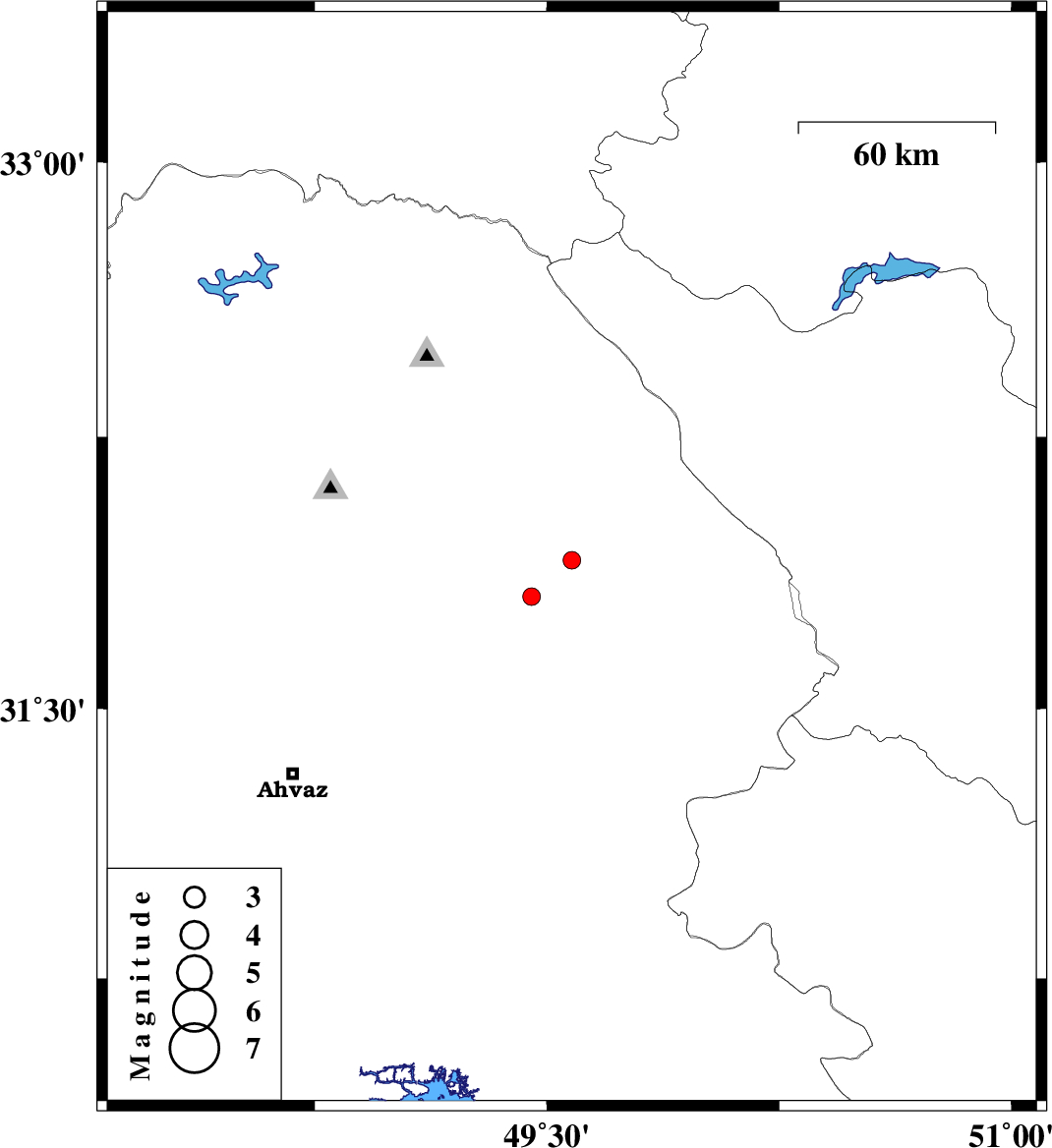 | 2011/06/28 | 23:04:39.9 | 03:34:39.9 | 31.91 | 49.58 | 17 | ML2.5 | Khoozestan Province, 26 km East of Masjed Soleyman | ||