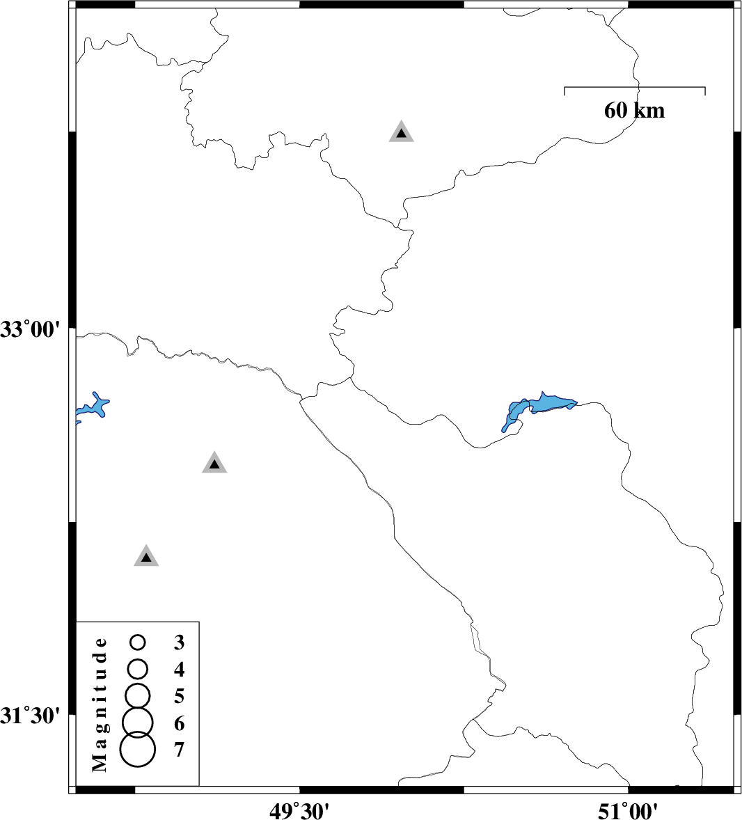| 2011/07/20 | 22:52:04.0 | 03:22:04.0 | 32.72 | 49.98 | 7 | ML2.5 | Esfahan Province, 27 km South-West of Fereydunshahr |