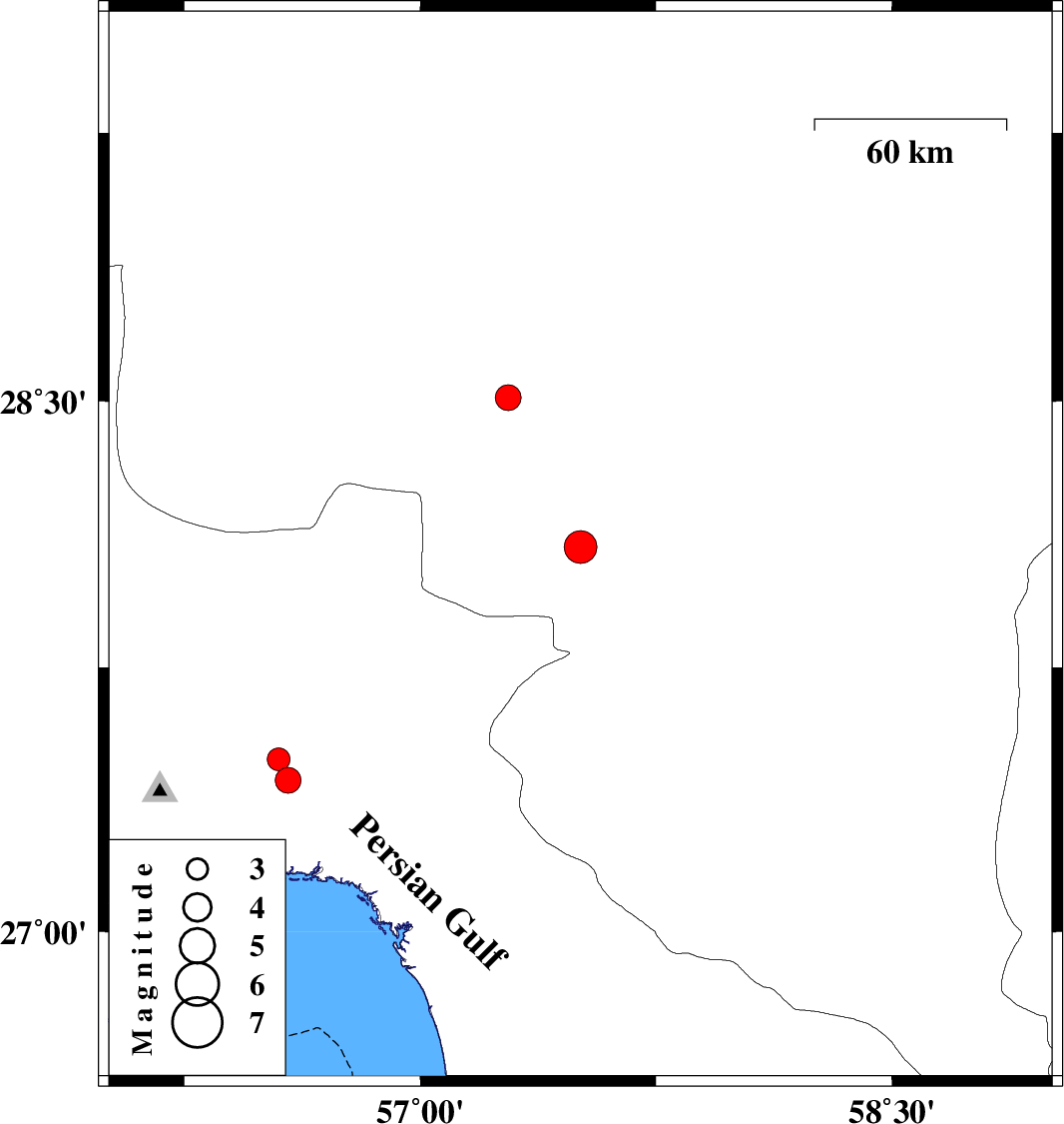 | 2011/07/25 | 23:26:09.1 | 03:56:09.1 | 27.49 | 56.55 | 14 | ML3.2 | Hormozgan Province, 43 km North-East of Bandar-e abbas | ||