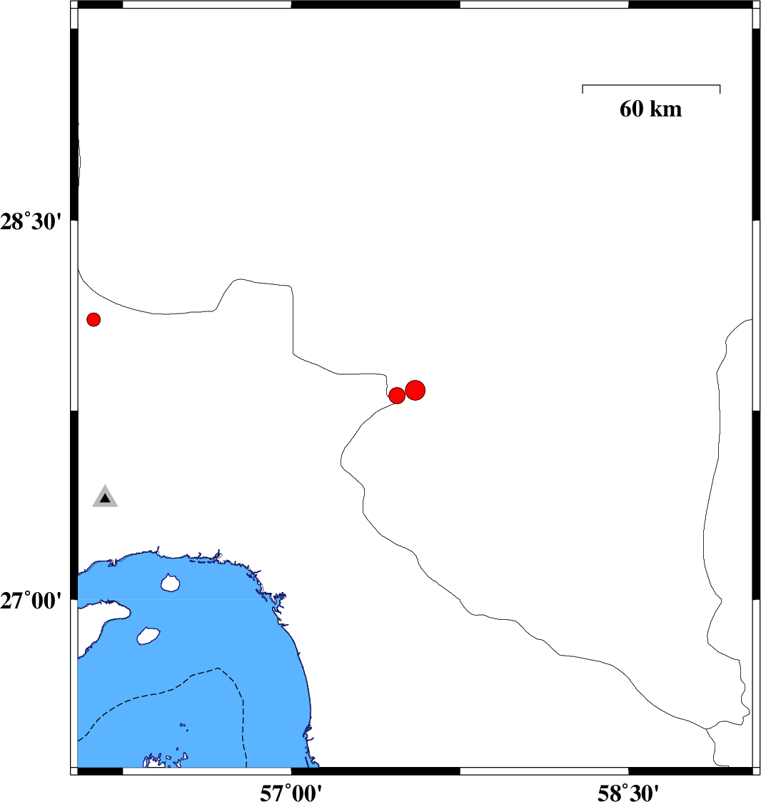 2011/08/21 01:54:46.4 06:24:46.4 27.8357.5531 ML4 Kerman Province, 19 km South-West of Kahnuj