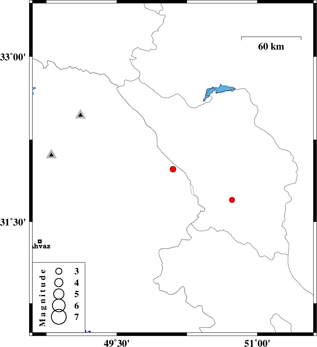 | 2011/09/04 | 18:26:26.8 | 22:56:26.8 | 31.98 | 50.1 | 14 | ML2.9 | Khoozestan Province, 27 km North-East of Izeh | ||