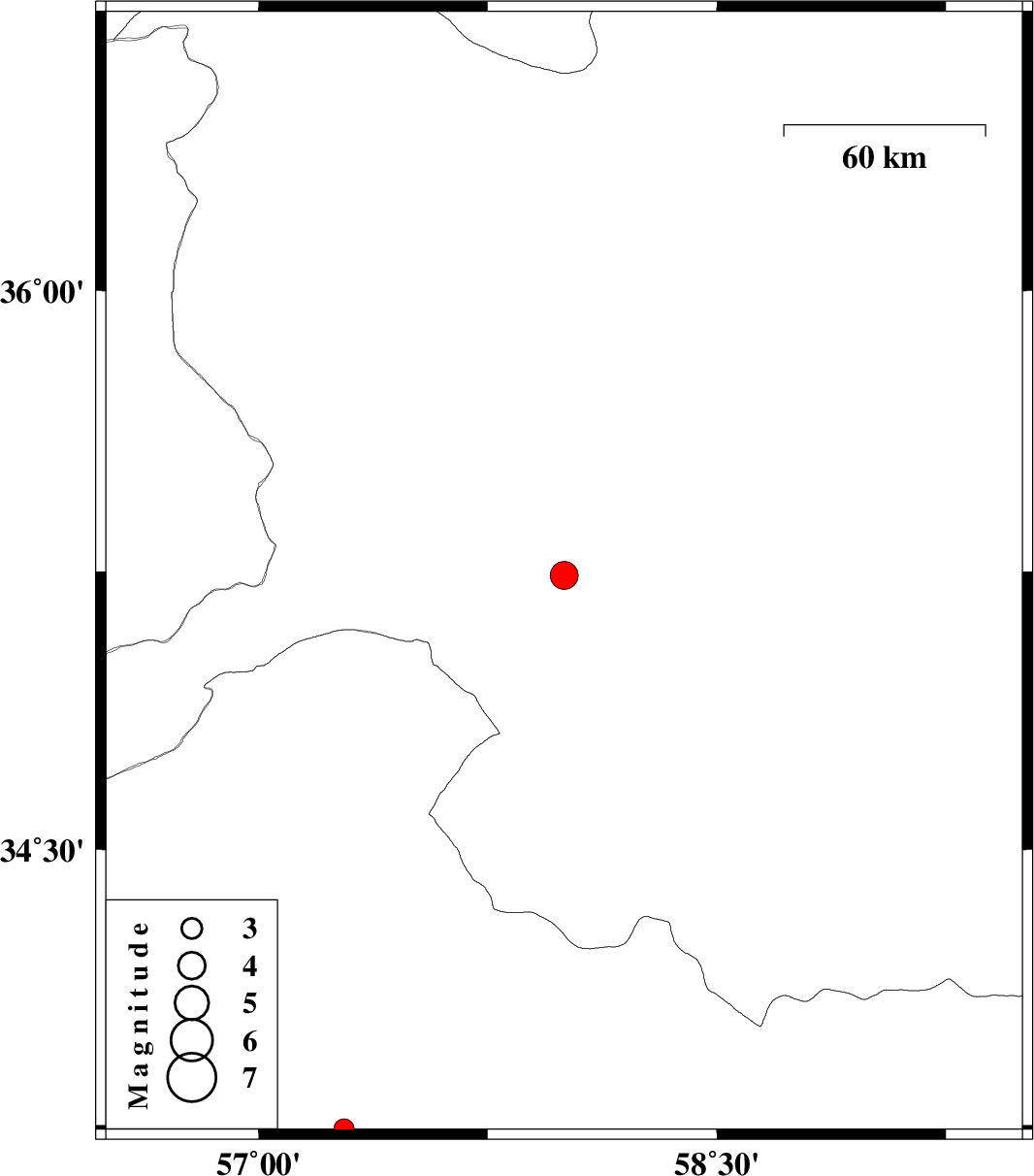 | 2011/09/05 | 00:52:14.4 | 05:22:14.4 | 35.24 | 58 | 18 | ML4.1 | Khorasan(center) Province, 5 km Bardeskan | ||