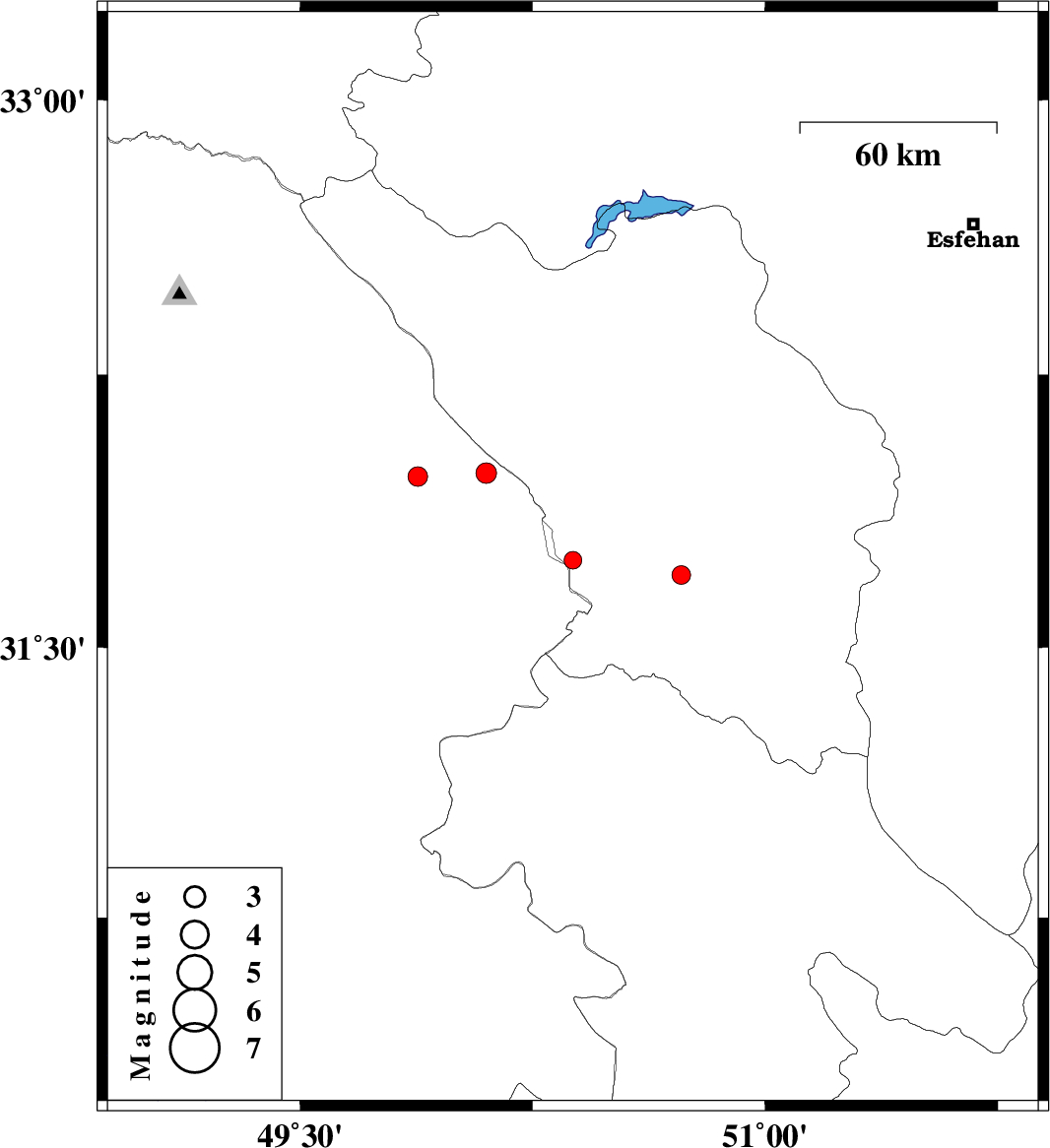 | 2011/08/31 | 12:40:14.9 | 17:10:14.9 | 31.7 | 50.73 | 14 | ML2.7 | Chaharmahal Bakhtiari Province, 24 km North of Lordegan |