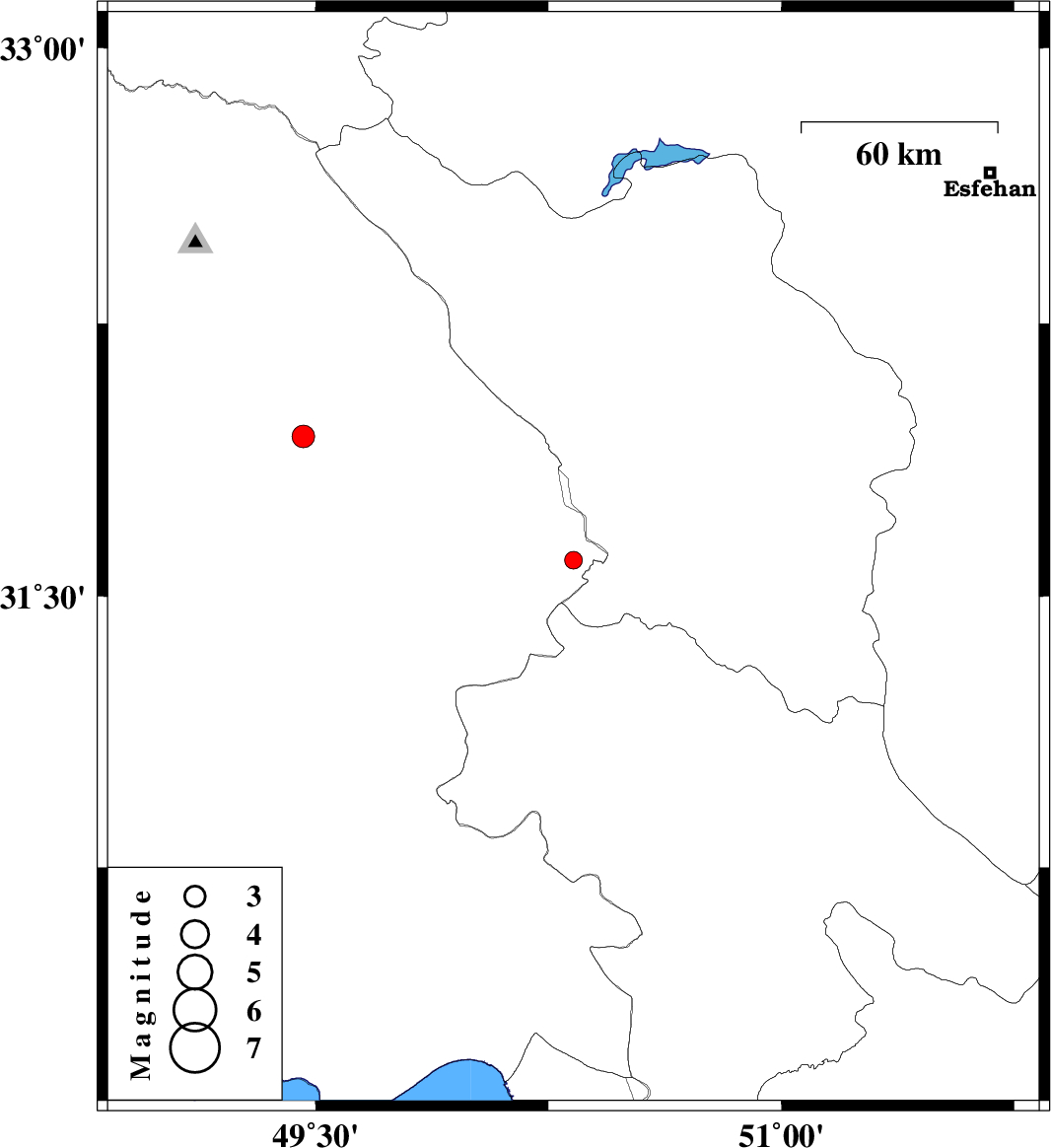 | 2011/09/20 | 00:49:37.4 | 05:19:37.4 | 31.94 | 49.46 | 16 | ML3.2 | Khoozestan Province, 14 km East of Masjed Soleyman |