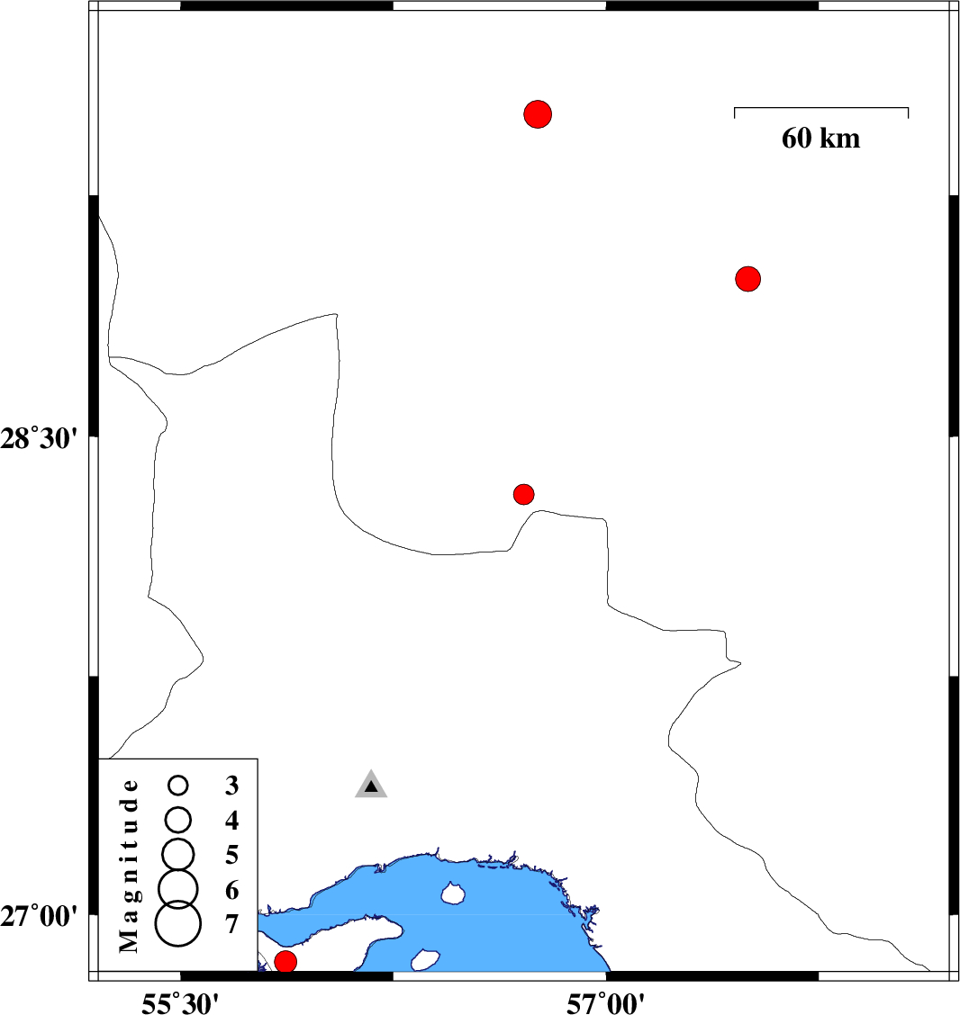 | 2011/09/18 | 02:38:51.3 | 07:08:51.3 | 28.99 | 57.5 | 17 | ML3.9 | Kerman Province, 43 km North-West of Jiroft |