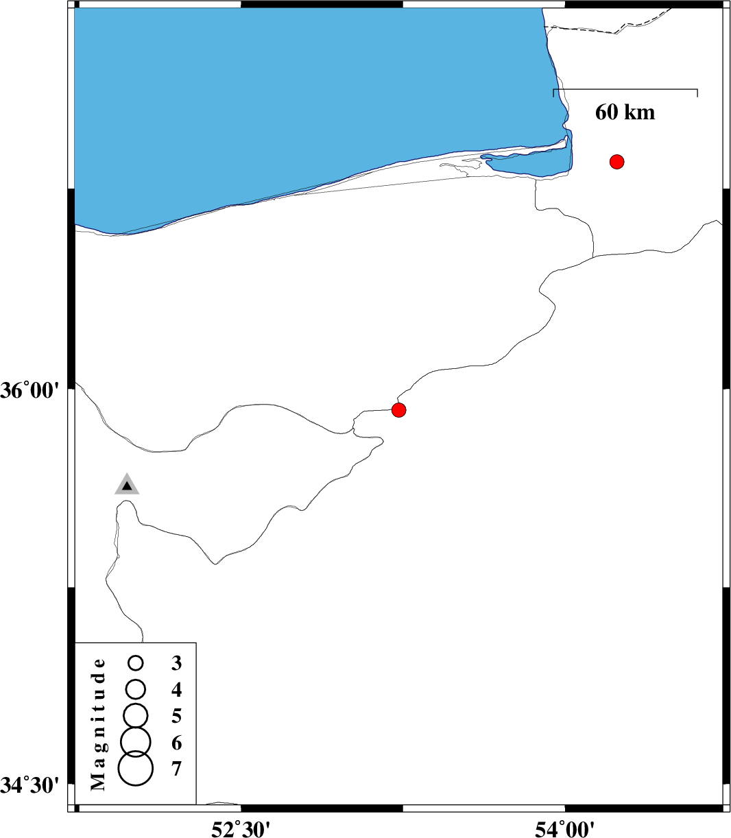 | 2011/10/03 | 04:53:20.0 | 08:23:20.0 | 35.92 | 53.23 | 14 | ML2.9 | Semnan Province, 26 km South-East of Pol-E-Sefid | ||