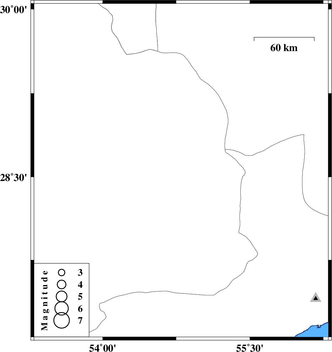 | 2011/10/08 | 01:58:28.8 | 05:28:28.8 | 28.55 | 54.8 | 18 | ML3.1 | Fars Province, 34 km South-East of Darab |