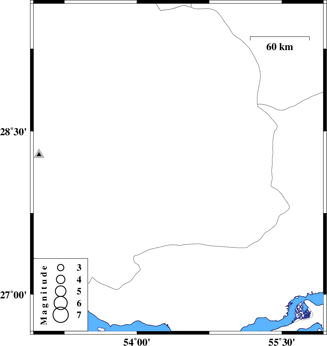 | 2011/11/01 | 00:19:23.5 | 03:49:23.5 | 28.16 | 54.43 | 31 | ML3.3 | Fars Province, 55 km North of Lar |